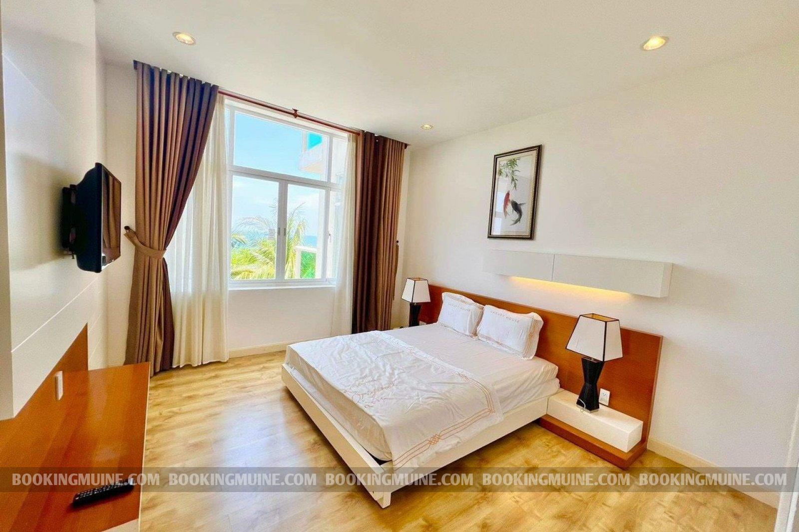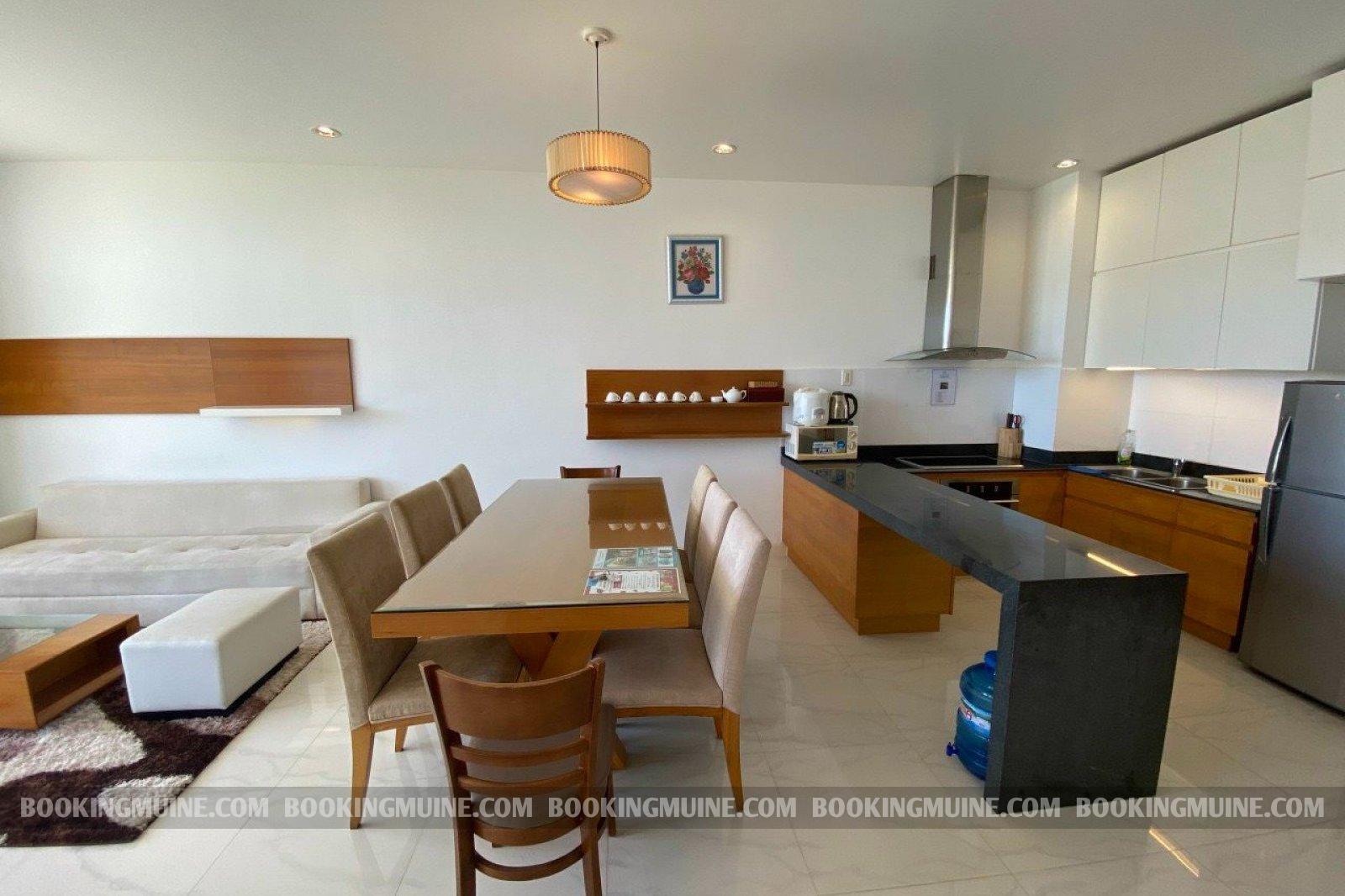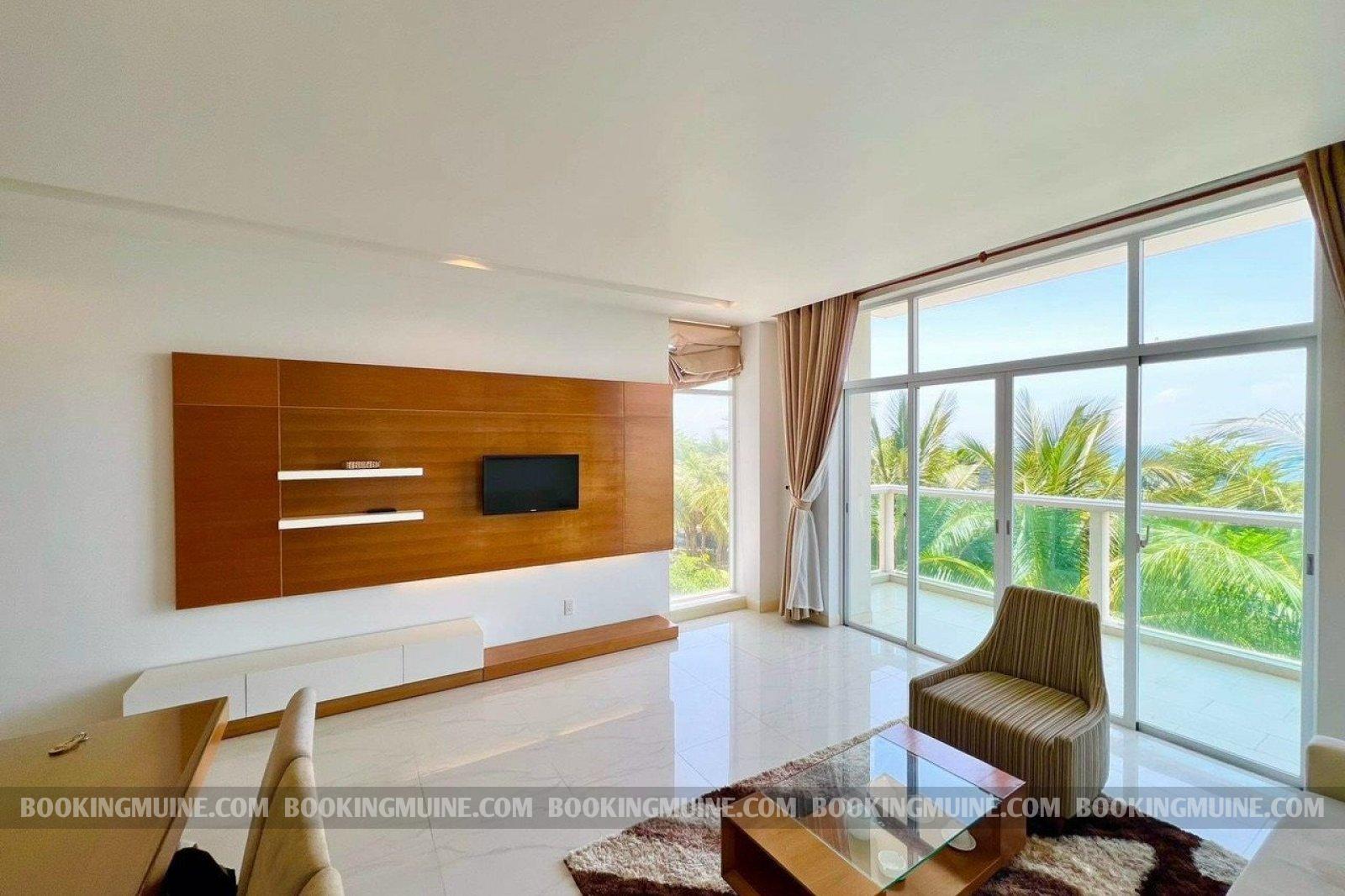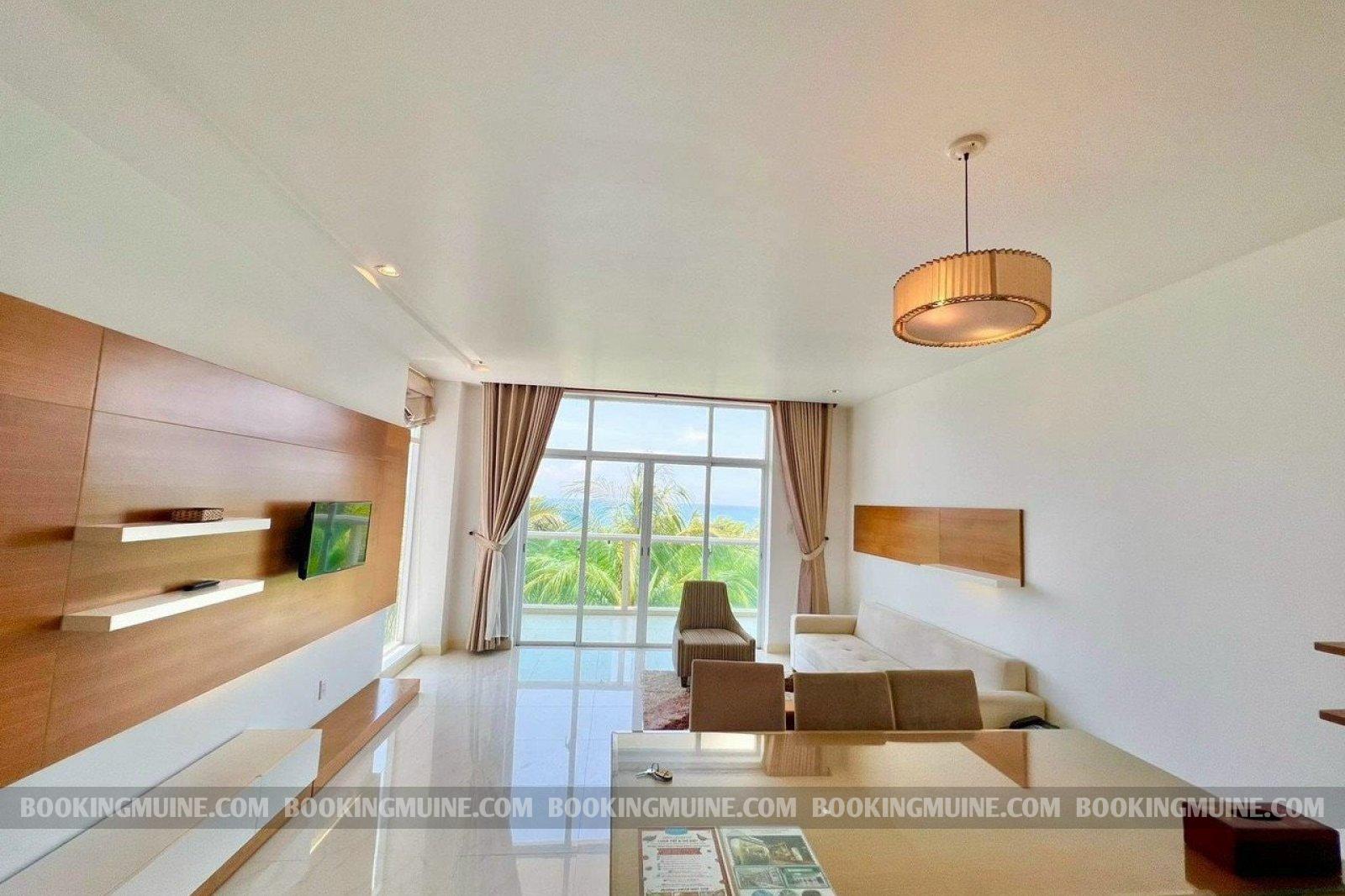 Căn hộ hai phòng ngủ là sự lựa chọn lý tưởng cho kỳ nghỉ của các nhóm bạn hoặc các cặp đôi tại bãi biển Mũi Né nơi mọi người sẽ có không gian thư giãn cùng nhau. Căn hộ được trang bị đầy đủ tiện nghi, có bếp và ban công riêng với hướng nhìn bao quát vịnh Mũi Né.